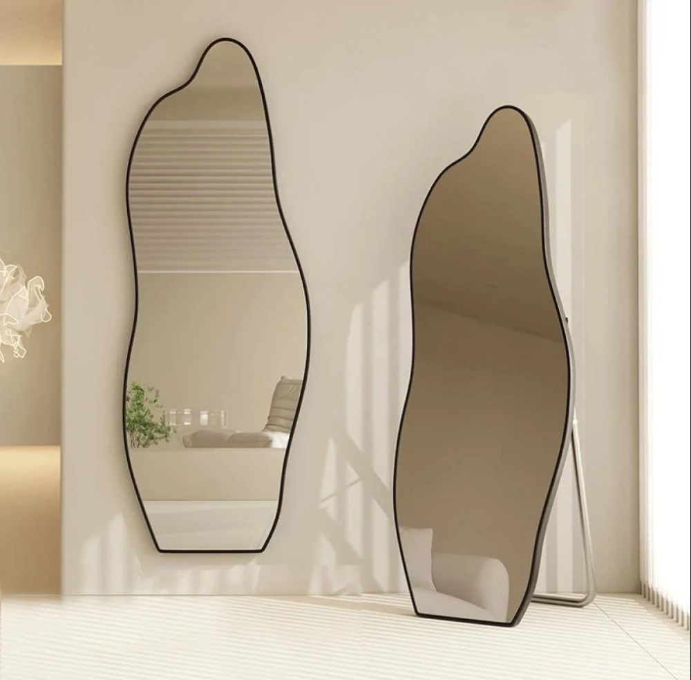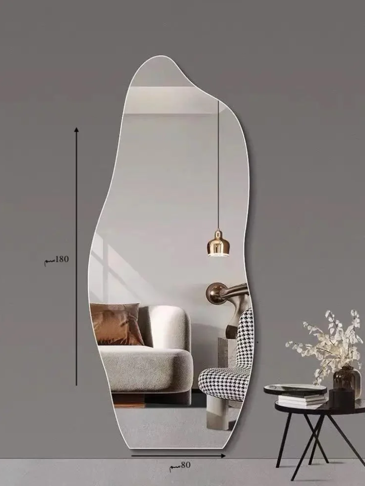 المرآة تأتي بإطار أنيق ونحيف يبرز شكلها المميز، مع لمسة جمالية تعكس الذوق الحديث وتضفي إحساساً بالاتساع في أي مساحة توضع بها.