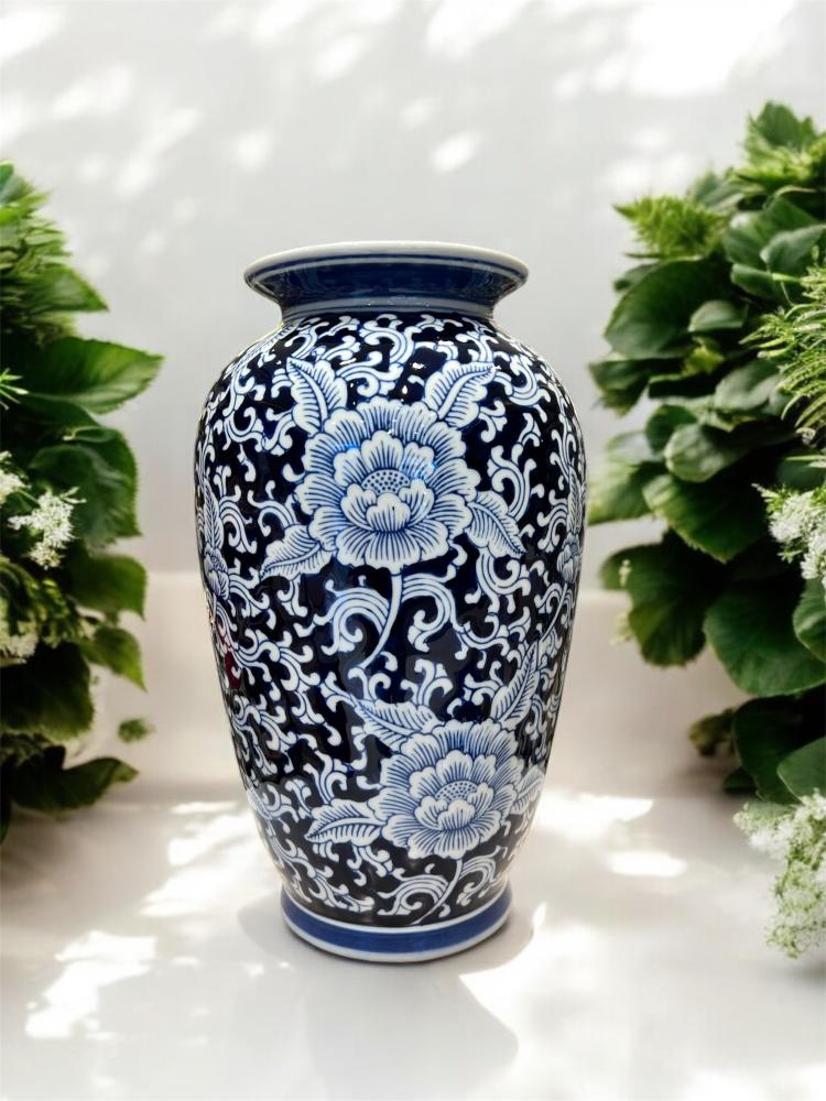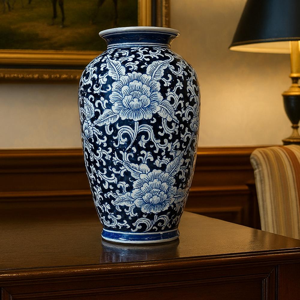 ارتقِ بأناقة منزلك مع هذه المجموعة من الفازات السيراميك المزخرفة بلون أزرق ملكي ونقشة ورود فاخرة محفورة بدقة متناهية. تأتي الفازات بدون غطاء لتكون الخيار الأمثل لعشاق الديكور الكلاسيكي الذين يبحثون عن لمسة فنية تزين الطاولات أو الأركان المميزة في المجالس والصالونات.